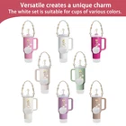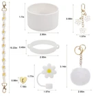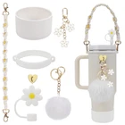 Stanley Cup Accessories Set Including 1 Pcs Water Bottle Handle Strap, 1 Pcs Siliocne Stanley Cup Boot, 1 Pcs Siliocne Straw Cover, 2 Pcs Stanley Charms for Stanley Cup 40oz & 30oz Tumbler (White)… Charming Stanley Cup Carrier -Our stanley cup accessories set is not only practical but also enhances your stanley cup's aesthetic appeal with additional stanley charms, making it a must-have stanley cup accessory. Unique Design-Our water bottle handle come with a advanced silicone safety ring and bohemian woven handle strap, unparalleled safety. our bottle carrier boasts attractive floral patterns. More than a carrying accessory, it's a trendy add-on to your bottle. Protective Stanley Boot-With our stanley protective boots, you can protect the base of your water bottle from scratches and dents, the diameter of 2.96inch is suitable for most 8-40 oz bottles, such as Stanley cups, Simple Modern tumblers, Hydroflash wide necked bottles, and other lipped bottles. High-Quality Material-Our straw covers are made from food-grade silicone material, suitable for Stanley 30/40 oz tumblers, as well as other cups with 0.4inch straws.these straw covers are durable, reusable, and easy to clean The set includes -1pcs water bottle handle strap, 1pcs water bottle boot, 1pcs silicone straw cover, 1pcs pompom ball, 1pcs daisy key-chain, 1pcs heart hook. The product does not include cups