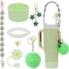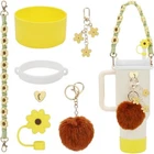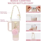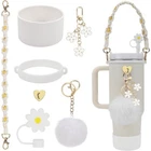 Product Description 😀Charming Stanley Cup Holder: Our Stanley Cup accessory set is not only practical, but also enhances the beauty of the Stanley Cup with additional Stanley charms, making it a must-have Stanley Cup accessory. 😀Unique Design: Our water bottle handles are equipped with advanced silicone safety rings and Bohemian woven handle straps for unparalleled safety. Our water bottle holder has a charming floral pattern. It is more than just a carrying accessory, it is a fashionable accessory for your water bottle. 😀Enhanced Protection: With our Stanley protective boot, you can protect the bottom of your water bottle from scratches and dents, with a diameter of 2.96 inches, suitable for most 8-40 oz bottles, such as Stanley cups, Simple Modern tumblers. 😀High-quality Material: Our straw sleeves are made of food-grade silicone material, suitable for Stanley 30/40 oz tumblers, and other cups with 0.4-inch straws. These straw sleeves are durable, reusable, and easy to clean. 😀Pack includes: 1 water bottle handle strap, 1 water bottle sleeve, 1 silicone straw sleeve, 1 pompom, 1 daisy keychain, 1 heart-shaped hook. The product does not include the cup.