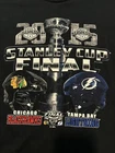 Show your support for the Chicago Blackhawks in this stylish men's XL t-shirt. The shirt features a graphic design and is perfect for fans of the National Hockey League (NHL). The short sleeve shirt is made by Gildan and has a regular fit for added comfort. Celebrate the Stanley Cup Final of 2015 and the excitement of hockey season with this fan apparel. The black shirt is an excellent addition to any wardrobe and is great for game day or everyday wear. This t-shirt is a must-have for any true fan of the Chicago Blackhawks.