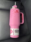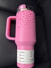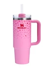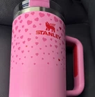 Stanley 40 oz Stainless Steel H2.0 Flowstate Quencher Tumbler with handle - Valentine's Day Sweet Hearts IN HAND Ships Same Business Day Thanks! Highlights 11 hours cold 2 days iced 18/8 recycled stainless steel Double-wall vacuum insulation FlowState™ 3-position lid Car cupholder compatible Dishwasher safe BPA-free Description Share your love with the special ones in your life with a Valentine’s Quencher from Stanley 1913, exclusively at Target. Pick from the sweetest rich pink or deep red hues, featuring matching cascading hearts. Made for gifting, a card label is included that’s perfect for your Valentine’s Day baskets, best friends and even as a little something for yourself. The 40-ounce Quencher H2.0 FlowState™ Tumbler keeps your drink ice cold for hours, thanks to double-wall vacuum insulation. The versatile FlowState™ 3-position lid has three sip settings: one for the reusable straw, one without and the option to rotate the silicone cover shut. It fits right in your car cupholder when you’re headed to your Valentine’s Day celebration.