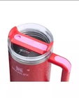 The Stanley Cup Valentine's Day 2025 Red 40oz H2.0 Flowstate Tumbler is a stylish and festive drinkware option perfect for celebrating Valentine's Day. This stainless steel tumbler features a hearts pattern design, making it a charming choice for the occasion. With a drink-through lid and straw, it is suitable for both hot and cold beverages, thanks to its insulated properties. The model is themed around Valentine's Day and offers a generous 40oz capacity, ideal for staying hydrated or enjoying your favorite drinks on the go.