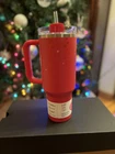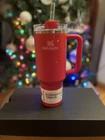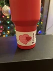 The Stanley Cup Valentine's Day 2025 Ruby Red 40 oz Flowstate Tumbler is a festive stainless steel tumbler with a drink-through lid and straw. It features a heart pattern and Valentine's Day theme, suitable for hot or cold beverages. This insulated tumbler has a 1 L capacity and is designed for all ages, making it a charming choice for enjoying drinks on the go.