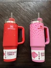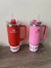 Celebrate Valentine's Day all year long with this stunning ruby red Stanley Cup tumbler, perfect for both hot and cold beverages. The tumbler features a sweet hearts pattern and a convenient drink-through lid, making it easy to enjoy your favorite drinks on the go. Crafted from durable stainless steel and steel, this 30 oz tumbler is designed to keep your drinks hot or cold for longer periods of time. The tumbler comes in a pack of two, making it perfect for sharing with a loved one or for gifting to a fellow Valentine's Day enthusiast. With its insulated design, this tumbler is perfect for any age group, including teens, boys, girls, kids, and adults. Show your love for Valentine's Day with this stylish and practical tumbler, made in the United States by the trusted brand Stanley.