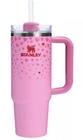 The Stanley Cup Valentine's Day 2025 Sweet Hearts 40 oz Flowstate Tumbler is a themed tumbler suitable for both hot and cold beverages. Made of stainless steel, this pink tumbler features a heart pattern, making it a perfect choice for Valentine's Day. It comes with a drink-through lid and straw, and it is insulated to keep your drinks at the desired temperature. This model is part of the Bottle and Food & Drink theme, making it a stylish and functional option for on-the-go hydration.