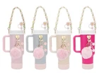 Set includes: 1pc water bottle handle strap, 1pc rubber cup ring, 1pcs water bottle boot, 1pc silicone straw cover, 1pcs pompom ball, 1pc daisy key-chain, 1pc heart hook. Fits 30 & 40oz cups.