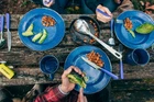 Table for 4 this way please! Even at the campsite off the grid you can enjoy your meal on classic blue enamel tableware from Stansport. Made with durable, high quality steel, this double-coated glazed enamel table set is attractive enough for home use too! This 24 piece set includes 4 cups, 4 bowls, 4 plates and 4 each knives, forks and spoons. Condition : This item is brand new, unopened and sealed in its original factory box. Weight: 4.5 lbs On Feb 14, 2025 at 02:15:34 PST, seller added the following information: