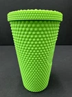 No straw. Indulge in your love for coffee with this Starbucks Fall 2021 16 oz Studded Matte Green Grande Tumbler. The tumbler is perfect for coffee and tea lovers and features a sturdy design that is sure to last for years. The tumbler is created with a matte green finish that adds a touch of elegance to your drinkware collection. The tumbler is an original Starbucks product that was created in 2021 and comes from China. It is perfect for collectors and enthusiasts alike who appreciate the coffee and tea theme. The tumbler is designed to hold 16 oz of liquid and does not come with a straw. Get your hands on this unique Starbucks tumbler today!