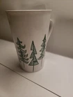 This Starbucks coffee mug features a green and white design with pine trees, making it the perfect addition to any coffee lover's collection.