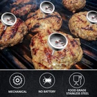 Mini Steak Button Thermometer Set of 4, Silver Features and introduction * Easy-to-read display shows rare, medium and well done temperature ranges for steaks. * Set of four steak thermometers takes the guesswork out of grilling your meats to the desired cooking level. * Registers rare, medium and well cooking levels quickly and accurately. * Stainless steel construction. To clean: 1. Wipe down the thermometer(s) with a wet napkin. 2. Do not submerge into water or run under water. Notice: 1. Please ensure the probe should be inserted into the potato at least 1.5 inches depth, otherwise, the temperature cannot be measured accurately. 2. To wash the product, it should be cooled down after used in high temperature. 【Get The Perfect Cook Meat】The Perfect Meat with Mini Steak Button Thermometer. These handy steak thermometers monitor steak's internal temperature so you know exactly when to take it off the grill. 【No More Undercooked Or Overcooked】This set includes four thermometers so you can precisely gauge their doneness to ensure that everyone gets their steak cooked just the way they like it. 【Good Use】Easy-to-read faceplates offers foolproof steak preparation. The set includes four individual button thermometers with a display to indicate when the inside of your steaks are cooked. Can be used for barbecue or oven. 【Durability and Reusable】Made from stainless steel for quality that lasts and easy clean-up. Safe to use in the oven so you can monitor the progress by leaving in steak while cooking. 【What You Get】Mini Steak thermometer 4 Pieces.