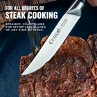 HIGH-END STEAK KNIFE SET - 4 Piece steak knife set with triple riveted luxurious pakkawood handle, imported high carbon German steel, full tang construction and 5 Inch razor-sharp straight blade edge for effortless and precise slicing. IMPORTED GERMAN STEEL – Precisely forged of high-carbon stainless German steel engineered to perfection at 56+ Rockwell hardness for long lasting performance, rust and stain resistant. FULL TANG ERGONOMIC DESIGN - Luxury pakkawood handle that is triple-riveted for sure grip and absolute stability that ensures comfort and maneuverability. Laminated and polished for a sanitary build, perfect for busy kitchens. RAZOR-SHARP BLADE EDGE – Hand sharpened edge at 14-16 degrees per side for maximum sharpness & edge retention ensuring precision slicing every time. On Feb 7, 2025 at 07:49:37 PST, seller added the following information: