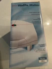 The Sunbeam Waffle Maker is a vintage square-shaped electric appliance in white, made of iron. It is a standard waffle maker with a capacity for 2 waffles and a power output of 750W. The model number is 3852, manufactured by Sunbeam with a 1-year warranty. Features include indicator light, heat-resistant handle, non-stick interior for easy cleaning, and automatic operation. This waffle maker includes a non-stick pan and handle, suitable for making delicious waffles with ease.