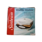 Kitchen must have! You know you want the one that you used to have! These always bring good memories. Make a special breakfast easy. Corded electric works great! By Sunbeam. White plastic case. Makes 4 waffles. Nonstick easy clean. Ready indicator light. Comes in original box. Cardboard box got warped when moving. As pictured. Best price online for this classic model!