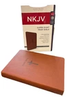 NKJV Super Giant Print Bible Brand NEW! Enjoy a close-up view of the Scriptures with Thomas Nelson's NKJV Super Giant Print Bible. Multiple new copies available - discounts for multi copy purchases! Large, easy to read 16-point type Words of Christ in red End-of-verse references Explanatory footnotes Concordance Presentation page Ribbon marker Brown Leathersoft Lay Flat Thomas Nelson publishing