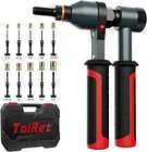 Rivet Nut Tool Rivet Nut Kit, Rivnut Tool Kit with 10 Metric and SAE Mandrels, 100 Pcs Rivet Nuts Assortment Kit, Professional Ratchet Nutsert Tool Kit with Rugged Carrying Case, TR21 Ratcheting Mechanism: The Ratchet Nut Tool features a ratcheting mechanism that allows for easy and efficient installation of rivet nuts. This mechanism ensures that the nut is securely fastened without excessive manual force Quick change mandrels: A convenient feature of the TOLRET Rivet Nut Tool is the quick-change mandrel system. This allows users to easily switch between different mandrel sizes without the need for additional tools, reducing downtime during jobs Ergonomic Design: The ergonomic design of the handle provides a comfortable grip and optimal control during operation. So that users can reduce fatigue and improve work efficiency when using it for long periods of time Durable Construction: Built to withstand the rigors of industrial use, the Ratchet Rivet Nut Gun features a rugged and durable construction. The combination of high quality materials and precision engineering ensures a long service life Consistent results: The ratcheting mechanism ensures that each rivet nut is installed with a consistent level of force, resulting in reliable and consistent results for nut tightness and safety