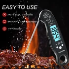 Instant Temp Reading Thermometer will make cooking more enjoyable and easier!- You love to cook a favorite meal for your family and friends? - You feel that can cook it even better, but something is missing? - You’re often told that a dish is not well cooked or overcooked/overdone? Our Newest Waterproof Instant Read Thermometer will help you become a real guru in the cooking world: Instant & precise temp read within 2-5 seconds Min/Max temperature reading save capability Measuring range from -58℉ to 572 ℉ High accuracy ± 1 degree Robust ABS plastic body IP67 Waterproof certification Celsius & Fahrenheit readings -Large Bright LCD Backlit display, easy to read Stainless Steel probe Auto shut off - standby period of 10 minutes Auto shut off button when closing the probe A comfort handle grip for better handling Can be re-calibrated when needed using a simple procedure Heavy-Duty, Long-Lasting Battery life Handy loop hole for easy storage Meat temperature guide laminated on the body Package Included: 1 x Digital Food Thermometer(incl.CR 2032 Battery) 1x Meat Temperature Guide 1 x Extra Battery 1 x User Manual NOTICE: 1.Do not touch hot probe with bare hands. 2. Do not leave the thermometer in the oven while cooking. 3. Do not completely immerse the digital thermometer in water for minutes. 4. Please wash the metal probe in soapy water. 5. Please clean the thermometer by hand or using water. SO EASY TO USE:Works right out the box! digital thermometer with foldable 4. 6 Food grade stainless steel probe and auto-on/off function, open the probe to turn on, fold the probe to turn off.EASY to use, storage and carry. With the included battery you can start using the thermometer right away. It’s the perfect solution for grilling, baking, deep frying, making candy, or uses it to test the temperature of your Liquid, beer, wine, tea, coffee, milk, soup, etc. SUPER FAST and ACCURATE:Takes a temperature in a little as 2-3 seconds, and is accurate to +/-1 degrees with a wide range of -58℉-572℉. No more waiting over a hot stove or grill for the temperature to settle. Find out the exact temperature of your food in a second! For maximum measurement accuracy a calibration function is provided. Perfect for indoor outdoor cooking, grilling, BBQ and so on. WATERPROOF PRACTICALITY:Every gap in the thermometer has a waterproof treatment, IP67 rated waterproof, the meat thermometer can be washed under running water without fear! With a strong ABS plastic body, it can withstand accidental drops or other impact accidents. With a waterproof and strong break resistant body, the food thermometer is highly durable and resilient. Great for grilling outdoors. Powerful:Easily switch between ℃ and ℉, the wide and bright LCD display with backlight makes it easy to read the temperature even when cooking outdoors or at night. Easy to calibrate and beautifully packaged, it makes an ideal gift for cooking or grilling enthusiasts, allowing you to cook mouth-watering meals effortlessly. 【Warranty】We stand by our products so you can make your purchase with confidence. Our products are rigorously tested and made with love because we believe that you deserve the best.