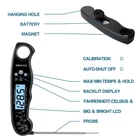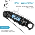 Instant Temp Reading Thermometer will make cooking more enjoyable and easier!- You love to cook a favorite meal for your family and friends? - You feel that can cook it even better, but something is missing? - You’re often told that a dish is not well cooked or overcooked/overdone? Our Newest Waterproof Instant Read Thermometer will help you become a real guru in the cooking world: Instant & precise temp read within 2-5 seconds Min/Max temperature reading save capability Measuring range from -58℉ to 572 ℉ High accuracy ± 1 degree Robust ABS plastic body IP67 Waterproof certification Celsius & Fahrenheit readings -Large Bright LCD Backlit display, easy to read Stainless Steel probe Auto shut off - standby period of 10 minutes Auto shut off button when closing the probe A comfort handle grip for better handling Can be re-calibrated when needed using a simple procedure Heavy-Duty, Long-Lasting Battery life Handy loop hole for easy storage Meat temperature guide laminated on the body Package Included: 1 x Digital Food Thermometer(incl.CR 2032 Battery) 1x Meat Temperature Guide 1 x Extra Battery 1 x User Manual NOTICE: 1.Do not touch hot probe with bare hands. 2. Do not leave the thermometer in the oven while cooking. 3. Do not completely immerse the digital thermometer in water for minutes. 4. Please wash the metal probe in soapy water. 5. Please clean the thermometer by hand or using water. SO EASY TO USE:Works right out the box! digital thermometer with foldable 4. 6 Food grade stainless steel probe and auto-on/off function, open the probe to turn on, fold the probe to turn off.EASY to use, storage and carry. With the included battery you can start using the thermometer right away. It’s the perfect solution for grilling, baking, deep frying, making candy, or uses it to test the temperature of your Liquid, beer, wine, tea, coffee, milk, soup, etc. SUPER FAST and ACCURATE:Takes a temperature in a little as 2-3 seconds, and is accurate to +/-1 degrees with a wide range of -58℉-572℉. No more waiting over a hot stove or grill for the temperature to settle. Find out the exact temperature of your food in a second! For maximum measurement accuracy a calibration function is provided. Perfect for indoor outdoor cooking, grilling, BBQ and so on. WATERPROOF PRACTICALITY:Every gap in the thermometer has a waterproof treatment, IP67 rated waterproof, the meat thermometer can be washed under running water without fear! With a strong ABS plastic body, it can withstand accidental drops or other impact accidents. With a waterproof and strong break resistant body, the food thermometer is highly durable and resilient. Great for grilling outdoors. Powerful:Easily switch between ℃ and ℉, the wide and bright LCD display with backlight makes it easy to read the temperature even when cooking outdoors or at night. Easy to calibrate and beautifully packaged, it makes an ideal gift for cooking or grilling enthusiasts, allowing you to cook mouth-watering meals effortlessly. 【Warranty】We stand by our products so you can make your purchase with confidence. Our products are rigorously tested and made with love because we believe that you deserve the best.