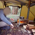 PORTABLE: Made of rust-proof TA1 titanium,fasteners and hinge pins are steel. 6.63lb including all parts. Assembly size: 15.1x8.7x11.3''. Fire box size: 15.1x8.7x7.8''; Thickness: 0.024'' (0.6mm) . Roll-up titanium pipe (7.2ft, Φ6CM) allows for quick installation after the initial burn-in. Carrying bag as the laptop bag for backpack camping. GOOD HEAT EFFICIENT: Titanium heat conduction is fast. 7 slidable door air intake and adjustable damper increase the burning efficiency of tent stove flexibly.The wider door makes it easier to put thicker firewood. Keeps hot tent warm in extremely cold weather(-30°C) . MULTIFUNCTIONAL IN CAMPING: 11.6’’x3.2’’ high temperature resistance side window can easy to observe burning conditions through glass at any time without opening the door. SIMPLE cooking/ boiling--The top panel is composed of 2 plates with a load-bearing bar that can support up to 22lbs. Ideal for 1-3 person hot tent camping. USER-FRIENDLY: Fast&easy folding stove. The door frame flat with the bottom of the folding wood stove make clean ash easier. Titanium spark arrestor is used to absorb sparks, comes with 3 wind rope fixing rings. The'H' shape of tent stove legs are suitable for uneven ground PACKING INCLUDE: Titanium wood stovex1; Spark arrestorx1; Stove pipe with ringsx1; Hookx1; A pair of gloves; Fastener for pipex1; Carrying bagx1. Not only suitable for hot tent camping but also great for use in the backyard