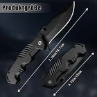 COMPACT- The folding knife unfolded length is 210mm, the folded length is 120mm, the length of the blade is 90mm, and the weight is 140g, Easy to fold to attach belt for one is portable. HIGH QUALITY MATERIAL- The folding knife is made of stainless steel 3CR13 and is the hardness 52HRC; The surface is blackening treated to bring beautiful appearance. It is the two-handed version, both left and right-handers can use the knife comfortably. SAFE & EFFICIENT- The blade in the pocket knife has a safety lock inside to prevent accidental closing of the knife, To close the knife, just press the liner lock and return the blade to the position. 4 IN 1 MULTIFUNCTIONAL OUTDOOR SURVIVAL- With sharp knife, bottle opener, cutter for rope and glass breaker, Not only for camping, hiking but also for hunting, survival, emergency. Perfect for cutting carpet, paper, plastic leather and cardboard etc. Type: Folding knife Overall length: 20CM Blade length: 8CM Handle length: 12CM Knife thickness: 0.3CM Blade width: 2.8CM Blade material: 3Cr13 Handle material: aluminium Hardness: 58HRC Net weight: 150g Surface finish: blackened 1 X Folding Knife