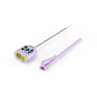 With its distinctive color, the Taylor Precision Products Allergen Waterproof Digital Pocket Thermometer reminds users to avoid measuring certain foods to avoid allergen cross-contamination. Instantly read temperatures from the easy-to-read LCD display on this waterproof pocket thermometer. With a temperature range of -40 to 500 degrees Fahrenheit or -40 to 260 degrees Celsius, this thermometer recalls minimum and maximum temperatures at the press of a button. This digital thermometer is easily recalibrated and includes a hold setting and a backlit display for easy reading, with auto shut off to preserve the included lithium battery. A 4.5-inch long stainless steel probe stem with step-down tip reaches deep and cleans easily, with a color-coded anti-microbial protective storage sleeve that clips to pockets or straps. With its flattened profile, never worry about the thermometer rolling off tables and other flat surfaces. Instantly read temperatures from the easy-to-read LCD display on this waterproof pocket thermometer. With a temperature range of -40 to 500 degrees Fahrenheit or -40 to 260 degrees Celsius, this thermometer recalls minimum and maximum temperatures at the press of a button. This digital thermometer is easily recalibrated and includes a hold setting and a backlit display for easy reading, with auto shut off to preserve the included lithium battery. A 4.5-inch long stainless steel probe stem with step-down tip reaches deep and cleans easily, with a color-coded anti-microbial protective storage sleeve that clips to pockets or straps. With its flattened profile, never worry about the thermometer rolling off tables and other flat surfaces.