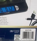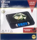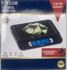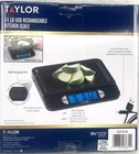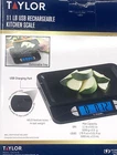 Taylor Kitchen Scale 11 Lb. Capacity Digital USB Rechargeable Multi-Function Black NO MORE BATTERIES: Use the convenient USB charging port instead of changing batteries. Under normal use, the scale holds power for over a week! CONVENIENT FEATURES: Hold feature locks in weight while the tare feature allows multiple ingredients to be weighed in the same container. EASY CLEANING: Stainless steel platform is removable for easy cleaning-just remove the platform and put it in the dishwasher! SLEEK DESIGN WITH EASY READING: The black stainless steel is lightly brushed for a classic appearance. The brilliant blue backlit display is easy to read at any angle. QUALITY AND PRECISION: Taylor has been making precision products for kitchen measurement for over 150 years, using only the highest quality components for accurate weighing. Max Capacity: 11 lb. x 0.01-ounce, 5000 g x 0.5 g (dry). 176 fluid-ounce x 0.01 fluid-ounce, 5000 mL x 0.5 mL (liquid). - Condition is New. See Pictures. - Shipping is Free. - Shipped With USPS Ground Advantage