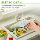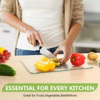 [Durable and Shatter Resistance]Constructed from premium tempered glass,this cutting board is both sturdy and durable, ensuring it can withstand the rigors of daily use. The smooth edges provide a comfortable grip and prevent any accidental cuts or scrapes. [Anti-Slip Design]This glass cutting board has four rubber feet on the bottom that prevent it from sliding on the countertop. It provides stability and safety when you cut vegetables, meat, or other foods. (Note: Do Not Put Rubber Feet In Dishwasher) [Heat Resistant]With high heat resistance, Tempered glass cutting board can not only be used for preparing dishes, but also soup pots, hot pans or baking trays can be placed on glass cutting mat. It's a perfect countertop heat protector. [Hygienic and Safe] A nonporous cutting surface makes it easy to clean, no stain remains. Glass chopping board won't absorb odors, left with no oil. The smooth surface is not easy to condense water droplets. [Easy to Clean]Cleaning is a breeze with this glass cutting board - simply wipe it down or toss it in the dishwasher for effortless maintenance.