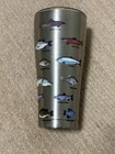 The fish stick out a little bit providing a nice texture and extra grip. The Tervis Fish Identifier 30 Oz. Stainless Steel Drink Tumbler is a round tumbler featuring a fish theme in multiple colors. It has a capacity of 30 ounces, stands at 8 inches tall, and comes with a slider lid. Made of stainless steel, this drink tumbler is designed for fish enthusiasts and is perfect for enjoying your favorite beverages on the go.