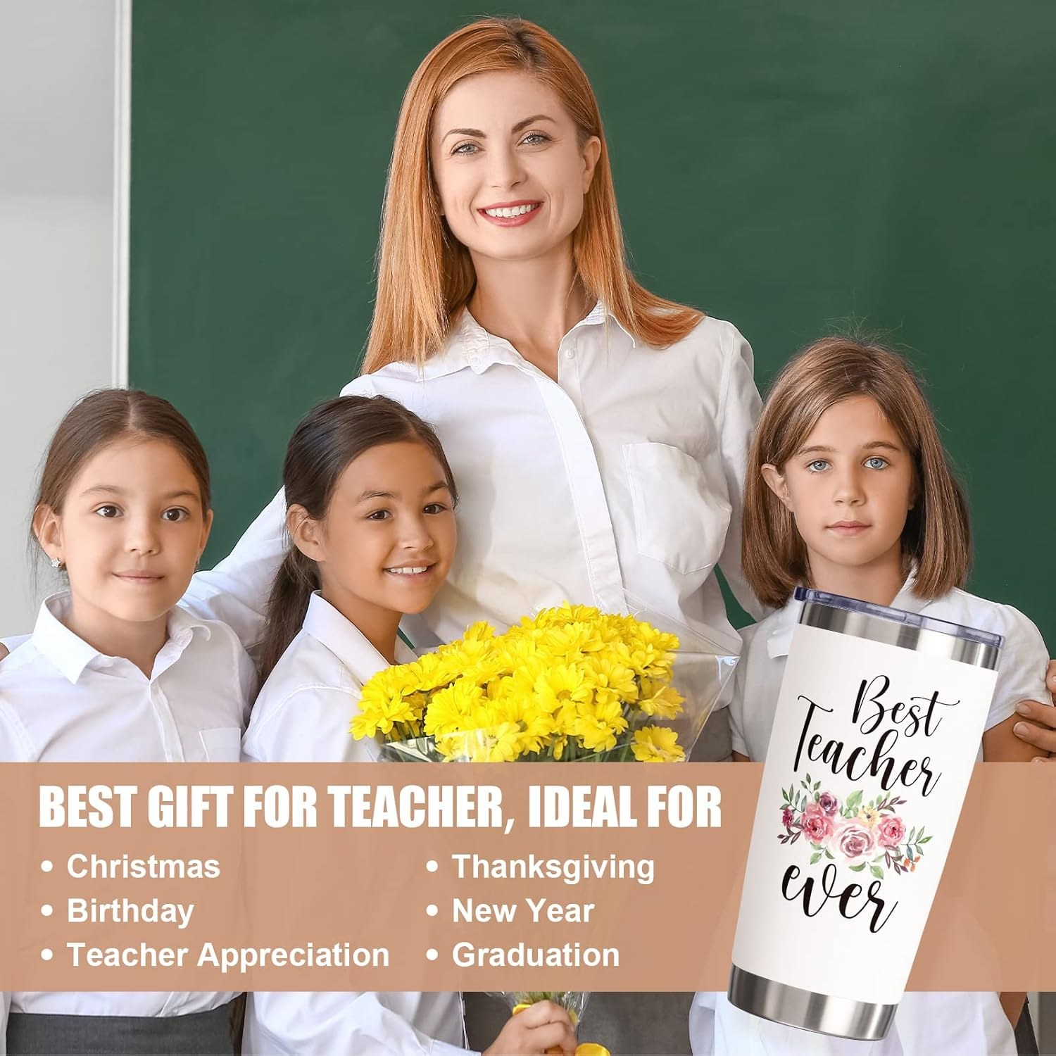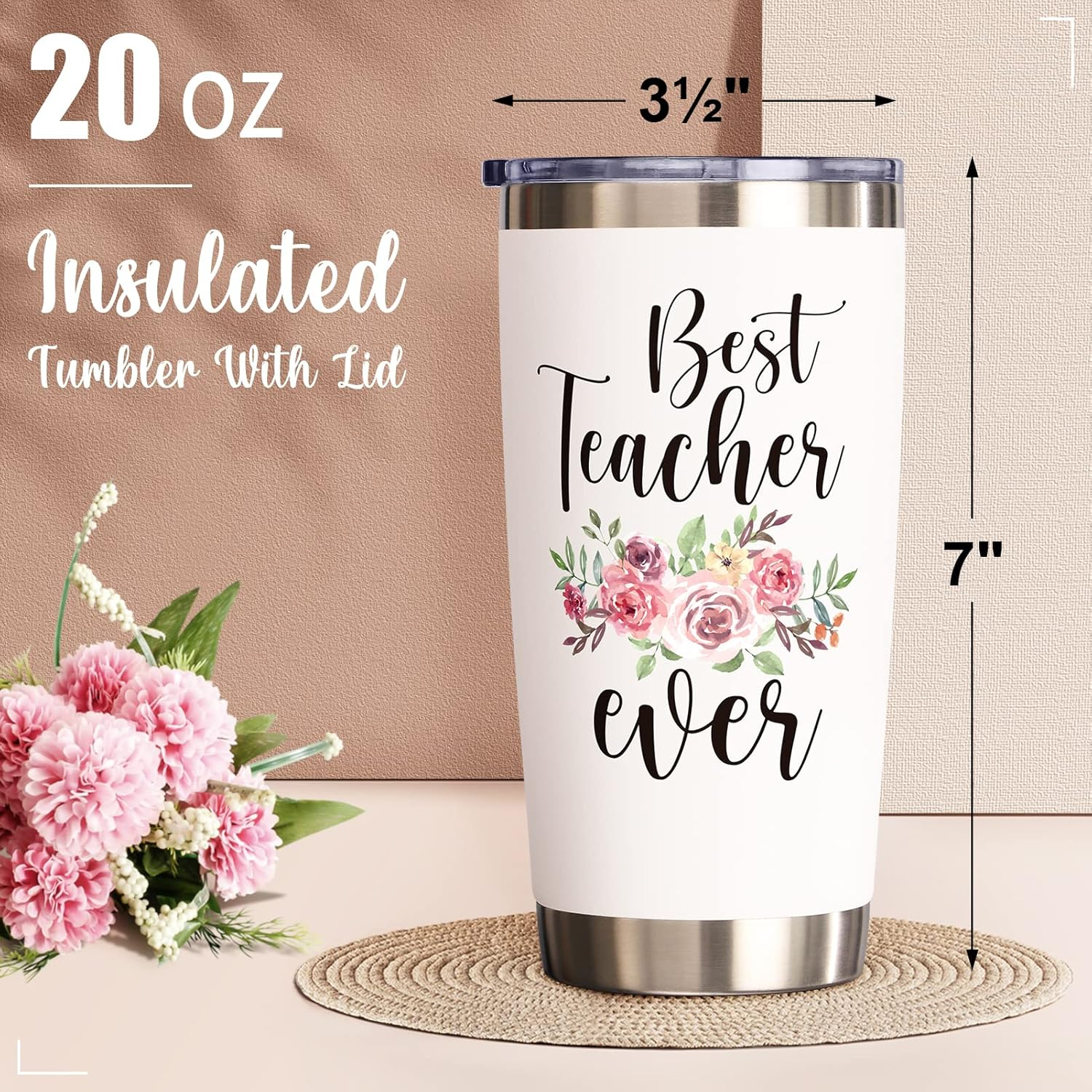 Store New Arrivals Add to Favorite View Feedback Contact Gifts for Teacher from Students, 20 Oz Tumbler Christmas Gifts for Teacher Appreciation Teacher Gifts Insulated Cup Unique Boxed Present for Birthday Thanksgiving Gifts Tumbler for Teacher Description Style Best Teacher Ever Number of Items 1 Pattern Letter Print Country of Origin China Theme Funny Material Stainless Steel, Silicone Capacity 1.3 Pounds Unit Count 1 Count Product Dimensions 3"W x 7"H Age Range (Description) Adult Finish Type Powder Coated Specific Uses For Product Cold Drinks, Hot Drinks Included Components Lid, Straw Reusability Reusable League ncaa Item Weight 12.6 ounces Material Feature Insulated Occasion Christmas、ThanksgivingTeacher、 Appreciation Week、Valentines Day、Birthday Special Feature Dishwasher Safe Color Pink Shape Cylinder Recommended Uses For Product Home,Travel, Camping Material Type Free BPA Free Product Care Instructions Machine Wash, Hand Wash Only PERFECT GIFT FOR THE BELOVED ONE: This gift tumbler for teachers with sayings:"Best Teacher Ever" are great gifts for Christmas, Thanksgiving, Teacher's Day, Teacher Appreciation, Birthday, making them smile with every sip! In addition, packed in a gift box, these tumblers possess great performance in keeping their beverage cold or warm while decorated with beautiful and funny prints. Show teachers your care with this thoughtful Christmas gifts that will make their lives easier and more fun SAFE & PREMIUM MATERIAL: Fimibuke 20oz tumbler with lid is made of premium 18/8 stainless steel, fully resistant to oxidation and corrosion. This stainless steel cups comprise BPA-FREE, food-safe and recyclable material. These Christmas gifts travel cups are not dishwasher safe, handwashing is highly recommended. These insulated cups are perfect to enjoy drinks at occasions such as home, office, beach, camping, picnic. This gift cup set includes 1 gift tumbler 20oz, 1 leak proof lid, 1 gift box DOUBLE WALLED VACUUM INSULATED: With double-walled vacuum insulation, these insulated cups can preserve beverage temperature up to 24 hours for cold and 12 hours for hot. In addition, the double walled design and powder coated finish make the bottle sweat-free. Also, the top mouth is wide enough for refilling and inserting ice cubes or fruits. This cup is designed to preserve the quality and temperature of beverage such as coffee, iced fruit teas, wine, champagne, smoothies, sodas, milkshake LEAKPROOF SLIDING LIDS: With this Christmas gift tumbler, the seal zone technology in the lids guarantees that each stainless steel tumbler is totally leak-proof and spill-proof. These BPA-FREE lid are designed with a slider on the top for easier using. You can not only drink from the hole on the top for sipping, but also put your own straw in this straw friendly cups to enjoy smooth drinking. You can confidently take these leak proof insulated cups with lid around without any worries of spills IDEAL GIFT GIVING & : A great Christmas gift for your lovely teachers or someone who helped you. Just choose these cups with beautiful and funny prints and keep your beloved ones beverages quality and fresh. Fimibuke premium stainless steel tumbler is great for Teacher's Day, Christmas, Thanksgiving, Teacher Appreciation, Teacher Birthday. Our Team offers superior customer service, high-quality material, and a life-time warranty. Any questions, send us your issues for solution OFFER GIFT WRAP/MESSAGE OPTIONS: PLEASE ADD YOUR PERSONALIZED MESSAGE OR CHOOSE WRAP IN GIFT BAG BY CHECKING "Add gift options at checkout" Product Description Christmas Teacher Appreciation Gifts Teachers devote themselves to doing incredible work in education. They're smart, funny, caring, hardworking, and exciting. Not only have they created lessons to help students learn lots of knowledge, they have also taught students to be a better man. Teacher's love has shaped us to be well-educated and knowledgeable and deserves the sincere appreciation. Show out your special love for your teacher by surprising her/him with a beautiful and functional gifts and bless dear teacher with happy and prosperous life. Fimibuke 20oz gift tumblers for teacher are not only designed with funny sayings and packed in a beautiful gift box, but also possess great performance in keeping their beverage cold or warm, making her/him smile with happiness and love. ABOUT FIMIBUKE Fimibuke is devoted to creating more premium gift tumblers to be a great choice with beautiful designs and functions as gifts for teachers. Great for Teacher's Day, Graduation, Birthday, Christmas, Thanksgiving etc. Note: 1. These tumblers are not dishwasher safe, Hand wash only. 2. DO NOT put the stainless steel cups in the microwave. 3. DO NOT wash it with strong detergents. WHY CHOOSE US? Great Gift Choice: Packed in a beautiful gift box and designed with beautiful and funny prints, Fimibuke 20oz gift tumbler is a great choice to show out your sincerity and caring as Christmas teacher gifts. Safe & Premium: Made of premium food-grade 18/8 stainless steel and BPA-FREE plastic, all are food-safe and recyclable. Double Wall Insulation: These teacher appreciation gifts can preserve beverage temperature up for a long time, fit for coffee, iced fruit teas, wine, champagne etc. 18/8 Stainless Steel Double Wall Insulation Gift Box Package Reusable & Durable Sweat-free & Leakproof Fimibuke 20oz Gift Tumbler Set - Christmas Gifts for Teachers GIFT BOX PACKAGE Designed with a beautiful gift box, this 20oz tumbler set is a great gift choice for teacher. EASY TO USE These cups are perfect to enjoy drinks at occasions such as home, camping, picnic. FIT FOR CAR HOLDER This cup is designed to fit for car holder perfectly. Easy to drink on car without mess. Multifunctional 20oz Gift Tumbler Christmas Gifts for Teacher Versatile Gift Ideas Perfect Gifts for teachers from students on Teacher's Day, Christmas, Birthday, Thanksgiving, Graduation, New Year and other various festivals. Teac