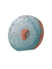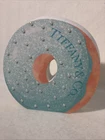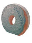 Elevate your home decor with this stunning piece of art from Tiffany & Co. Featuring a glossy donut print with faux pearls and flat paint finish, this decorative item measures 6.5 inches in length, 6 inches in height, and 1 inch in width, weighing approximately 10 ounces. The abstract style and 3D effect of this art piece create a unique and eye-catching display, perfect for any room in your home. The piece features a charming donut with pearls in a robins egg blue color, giving it a feminine and artistic touch. This art decor is free-standing and does not require any additional parts to display it. Care instructions include dusting and cleaning with a damp cloth. This item is perfect for teens and adults, and it can be a great addition to any room.