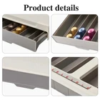 Features: 1. The sliding drawer structure makes it easy to take out your coffee capsules, helping you distinguish their taste and color. 2. It is very suitable for placement in any kitchen, office, or small space. This is the perfect solution for tidying up countertops while keeping your coffee supplies organized and within reach. 3. This storage rack is very easy to install, no need to use tools to drill holes and tighten screws, just gently fasten the products. 4. This convenient home coffee storage rack takes up a small amount of counter space, but is large enough to hold thirty coffee capsules. 5. The coffee capsule holder can be smoothly pulled out. After enjoying your coffee, simply gently push the drawer back. When not in motion, the structure securely holds the storage rack in place. Specifications: Packaging size:28cm*19cm*8cm Product weight:305g Product appearance: gray white Scope of use: Storage of coffee capsules and tea bags Product Material: ABS Package List: Capsule rack * 1 Note: Due to manual measurement, please allow for a slight error. Please make sure you don't mind before bidding. Due to differences in monitors, colors may vary. Please understand. On Nov 30, 2024 at 00:55:37 PST, seller added the following information: