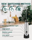 3 Speed Setting- This milk frother handheld with indicated light, features low, mid, high speeds to cater to your desired frothing consistency within 15-30S. Low for protein powder, matcha, cocoa and jucice etc. Mid for making jam, frother. High for egg, cream milk. The higher speed you choose, the less time you will spend, and the thicker foam you will create. USB Rechargeable- No more hassle with batteries. This frother comes with a USB charging cable and a convenient charging base. Stylish and practical charging base that keeps your frother organized and within reach. The base doubles as a storage stand, ensuring your frother is always ready for use. 2 Detachable Stainless Whisk- 2 detachable 304 stainless steel whisk heads are included in this package. Spring and double spring whisk are suitable for mixed milk powder, latte, cappuccino, and coffee. Easily switch to use, suitable for a variety of kitchen use scenarios. Easy to clean- The detachable whisk attachments and stainless steel construction make cleaning effortless. Simply rinse the whisk under running water and wipe the handle with a damp cloth. This foam frother operates quietly, makes you enjoy a quiet and peaceful frothing experience. 1 Year Worry- Free Warranty - The milk frother is so handy and useful that you can gift it to your friends and family. Let them enjoy the convenience of making chocolate or cappuccino at home. We are confident of our product and know you will like it. This is why we back up our product with our no-questions-asked warranty. Order now and start to create thick and creamy foam for your homemade drinks. Warm Tip: This milk frother features a powerful motor, operates on high power, and may splash liquid. Please use a taller and larger container to prevent spilling liquid on table tops, clothes, or other places.