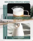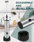 3 Speed Setting- This milk frother handheld with indicated light, features low, mid, high speeds to cater to your desired frothing consistency within 15-30S. Low for protein powder, matcha, cocoa and jucice etc. Mid for making jam, frother. High for egg, cream milk. The higher speed you choose, the less time you will spend, and the thicker foam you will create. USB Rechargeable- No more hassle with batteries. This frother comes with a USB charging cable and a convenient charging base. Stylish and practical charging base that keeps your frother organized and within reach. The base doubles as a storage stand, ensuring your frother is always ready for use. 2 Detachable Stainless Whisk- 2 detachable 304 stainless steel whisk heads are included in this package. Spring and double spring whisk are suitable for mixed milk powder, latte, cappuccino, and coffee. Easily switch to use, suitable for a variety of kitchen use scenarios. Easy to clean- The detachable whisk attachments and stainless steel construction make cleaning effortless. Simply rinse the whisk under running water and wipe the handle with a damp cloth. This foam frother operates quietly, makes you enjoy a quiet and peaceful frothing experience. 1 Year Worry- Free Warranty - The milk frother is so handy and useful that you can gift it to your friends and family. Let them enjoy the convenience of making chocolate or cappuccino at home. We are confident of our product and know you will like it. This is why we back up our product with our no-questions-asked warranty. Order now and start to create thick and creamy foam for your homemade drinks. Warm Tip: This milk frother features a powerful motor, operates on high power, and may splash liquid. Please use a taller and larger container to prevent spilling liquid on table tops, clothes, or other places.