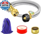 Upgraded Propane Refill Adapter Hose with Gauge and On/Off Valve, 36" Propane Extension Refill Hose Kit, 1LB Propane Filling Hose Set with 1 LB Propane Bottle Cap, Roll Sealing Tape (Stainless Steel) 【Upgraded Propane Refill Adapter Hose】The 36" 1LB propane refill hose upgrade to coloful dial gauge (match with tank gauge level indicator) , which allows you to read and monitor the gas level without necessarily removing the tank, and can detect the leaks. Besides, the 36" propane refill hose upgrade to stainless braided hose with Shut-Off ball Valve. 【How to Use】Step 1: Connect the QCC1 adapter to your big propane tank. Step 2: Open gas for few seconds or it may not work. Step 3: Connect the side of the tank adapter connection with shut-off control valve to your small propane bottle. Step 4: Refill your 1lb bottles with propane from the big propane tank. If you do not want to refill,close the refill valve. So, you can refill the 1lb propane bottle from 20-50Lb propane tank directly without having to move or carry the large tanks easily. 【Product's Standards】The QCC1 Type inlet propane refill adapter hose meets the US CSA certification to ensure safety and durability. And the length of the Upgraded propane refill hose is:3 feet / 36 Inch / 91 cm. Rate pressure of the propane extension refill hose: 350PSI rated high pressure. 【Upgraded Material】The propane extension refill hose is made of stainless braided and the QCC1 male connect, propane tank gauge , gauge, and 1lb bottle tank adapter connection with shut-off control valve is made of premium brass to ensure secure and durable for long-lasting to use. And Anti-aging, anti-corrosion, heat-resistance, air tightness, flexibility features,ensures air tightness and stability. 【Wide Compatibility】The updated propane refill adapter hose can be compatible with camp stoves, heater, portable grill, home applications and so on. Ideal tool set for camping, tailgating, heating needs or having an outdoor cookout. 【Propane Refill Adapter Hose Kit】The propane extension refill hose set comes with 1pcs upgraded 36" stainless braided propane extension hose with coloful dial gauge and on-off control valve, 1pcs 1lb propane bottle cap, 1 roll sealing tape, 1pcs flannelette bag. Upgraded Propane Refill Adapter Hose, 36" Stainless Braided Propane Extension Refill Hose with Gauge, Shut off Valve, 1LB Propane Filling Hose Kit with 1 LB Propane Bottle Cap, Roll Sealing Tape Batteries Required? No Power Source NO Maximum Pressure 350 Pound per Square Inch Color Black Product Dimensions 7.4 x 4 x 0.74 inches Material Stainless Steel Country of Origin China Item Weight 1.32 pounds Shape Round Batteries Included? No Item Length 3 Feet Shipping Fast shipping is very important for us. Our standard US shipping service is FREE. Your order will be shipped within 2-3 business days upon full payment received. Your order will be delivered within 2-3 business days after the handling time. We only ship to the confirmed PayPal address. We reserve the right to cancel any order for any reason at any time. We are not responsible for undeliverable addresses. Returns and payment We offer a 30 days return policy from checkout winning date. We allow only PayPal as payment method FeedBack Your feedback very important to us, after you get your package and you are satisfied with our service please leave us positive feedback If you have any problem with your order / any questions please before leave any type of feedback Please visit our eBay store to check out other items for sale! Thank you for shopping at our store.