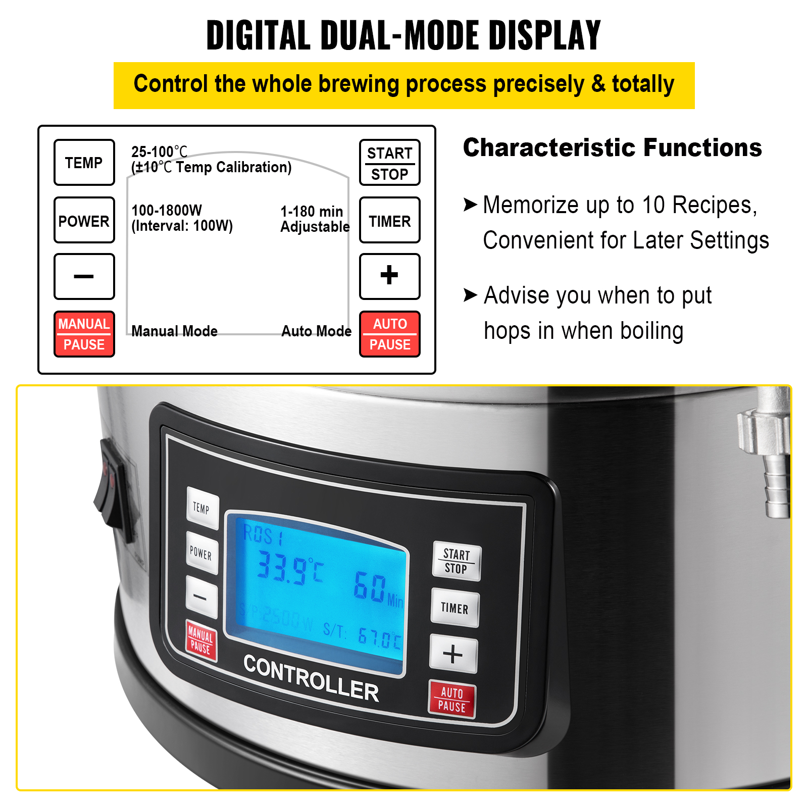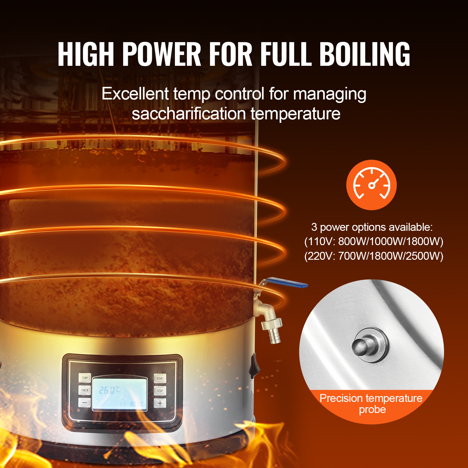 Document Product Description Beer fermentation barrels, for tasting rich homemade beer. Every detail optimization is to provide you with a better experience. Our barrels are made of food-grade 304 stainless steel material for a healthier and safer option. It is not prone to denting or deformation The beer brew fermentor utilizes upgraded sealed high elasticity locking clasps. The barrel lid is equipped with a silicone sealing ring, securely locking the lid to the barrel body, preventing leakage, ensuring longer fermentation preservation, and fearless transportation bumps. Proper ventilation promotes the discharge of microbial metabolites, improving fermentation efficiency. The lid can be fitted with a one-way exhaust pipe to release bubbles, injecting a small amount of water to prevent backflow, achieving sterile and breathable fermentation. Monitoring temperature changes during fermentation is necessary. Our stock pot comes with a thermometer, with clear scales and accurate readings. You can use it to monitor the temperature of brewing beer, spirits, wine, fruit wine, and more. The stainless steel beer stock pot is designed with a large capacity, suitable for both household and commercial use. It can be widely used in bars, kitchens, and outdoor activities. Here we will provide you with 4 types of beer bewing machine for your option: 8Gal Beer Fermenter, 16Gal Beer Fermenter , 8Gal Electric Kettle, 8Gal Electric Kettle with Reculating Pump. Features & Details Thickened 304 Material: The fermentation barrel is entirely made of stainless steel, with the barrel body, handles, inner lining, clasps, and barrel lid all made of food-grade 304 stainless steel. You can use it with confidence. With a barrel thickness of 0.5mm, it's sturdy, durable, and resistant to deformation. It's not prone to dirt accumulation, making cleaning effortless. Sealed for Freshness: The barrel lid features an embedded silicone sealing ring, providing double-layered sealing protection. The high elasticity clasp ensures a tight seal without gaps, preventing ants and insects from entering. It ensures no leakage even when inverted, and it won't spill during transportation or agitation. Sterile and Breathable: The top of the lid can be fitted with an exhaust pipe, which can be easily installed in seconds. One-way exhaust allows bubbles in the barrel to be released, and injecting a small amount of water prevents backflow, achieving sterile and breathable, oxygen-free fermentation. Temperature Visibility: The home brewing supply comes with a thermometer for easy monitoring of real-time fermentation temperature. The scale is clear, with Celsius/Fahrenheit temperature readings, ranging from 0-40°C/32-104°F. You can easily ferment beer, spirits, wine, fruit wine, and more with it. Large Capacity: With an 8/16-gallon fermentation capacity, you can enjoy satisfaction as you please. The thickened handles make it easy to lift, with dual steel stamp scales in liters/gallons. The adjustable height barrel feet allow for flexible adjustment according to needs. The conical bottom design is conducive to sediment accumulation and fermentation, with yeast slurry valves and beer valves for easy discharge of yeast sludge and bottled beer. SHIPPING ABOUT US PAYMENT RETURNS CONTACT WARRANTY Welcome to our eBay store. As a leading and emerging company in manufacturer and exporting business, we are specialized in Business and Industrial Products, Sporting Goods, Pet Products, Home and Garden products for more than 10 years. We believe that it is our vision and mission to provide innovative products with best service and competitive price to satisfy you. Our goal is to make sure that you can find exactly what you are looking for and make it easy for you to place your orders. We accept PayPal payment,PayPal Credit,Credit card or debit card and so on. Payment should be completed within 4 (Four) days of auction closing. Or unpaid dispute will be filed for closing auction. We will leave a positive feedback immediately after payment is received. We appreciate a positive feedback as much as you do. If for some reason there is any issue with the purchase, please contact us prior to leaving feedback, we will be glad to work together and provide a satisfying solution. Please be aware that PO Box cannot receive items, please DO NOT fill in the PO Box address. DELIVERY DAYS: 3-7 BUSINESS DAYS 3 BUSINESS DAYS SHIPPING OUT SHIP FROM CA & TX & NJ & GA & NC &OR WAREHOUSE California Warehouse: City of Industry, CA Texas Warehouse : Houston, TX New Jersey Warehouse : Perth Amboy, NJ New York State Warehouse: Perth Amboy, NJ Georgia Warehouse: Austell,GA North Carolina Warehouse: Grove NC Oregon Warehouse: AIRPORT WAY Portland,OR All of our items are backed with a 30-day return policy. We ensure all our items are new and in excellent condition prior to shipping. In case you receive the item that is not to the standards above, please contact us via e-Bay messages. All returns must be in new original condition as received and should be shipped with delivery confirmation Please note that all returns must be pre-approved by us. Unauthorized returns will not be accepted. If you need to return, please check twice to confirm the item not work and contact our customer service representative, let us know the detailed problem and send us some pictures for confirmation. We ONLY accept returns with original package. Please make sure that item has NO man-made sabotage. Used items will not be accepted for return. Email Customer Support: 9:00am-2:00am PST Sunday-Friday All emails will be responded to within 12-24 hours This item comes with 12 months Warranty from the date of customers purchased it. Special circumstances will be listed clearly in the listing. If your item has been damaged in transit or become faulty in warranty period, please email us with pictures or video to show the problem. Please do check everything carefully after you received the parcel, any the damage