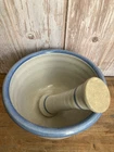 Add a touch of vintage charm to your kitchen with this Red Wing pottery stoneware mortar and pestle set. The set features a beautiful blue band pattern and is made in the United States. Measures 5” X 3.5”
