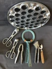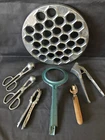 Wonderful Retro Utensils Set 7 pcs Kitchen utensil from the time of the Soviet Union Ukraine. Each gadget has a stamp. All in excellent working order. 1 set - 8 items made in USSR. VTG Ukrainian Glass jar opener, Nutcracker, Meatball maker, Can opener, Garlic press, Dumpling mold / Pelmennitsa. 1. Manual iron Can glass jar Opener (Открывалка) marked by plant named after Gagarin, price 1 ruble 65 kopeks. 2. Duos Meatball Makers Aluminium Meatball Scoop Ball Maker, Meat Baller Tongs, Cake Pop Maker Meatball Maker Melon Baller Cookie Scoop Cake . 3. Can opener with wooden handle. 4. Nutcracker 5. Garlice Press / Garlic Crusher 6. Dumpling Maker - Pelmennitsa. With this Form you can quickly prepare beautiful and delicious Pelmeni or Ravioli. !!! How to make dumplings using a dumpling machine: - Using a rolling pin, roll out a layer of dough no more than 0.5 centimeters thick, sprinkle the dumplings with flour and put the rolled dough on it - Make small balls from minced meat. Put them in the holes of the dumplings, pressing down a little. - Roll out the second exactly the same layer of dough, cover the dumplings with it. - Press down gently with your hands to avoid air bubbles. Now you need to walk over the dough with a rolling pin, pressing slightly. So, to separate excess dough and dumplings from each other. - Now you can turn the dumpling maker over and take out the finished dumplings. After that, they can be immediately cooked or frozen for future use. Cook like regular dumplings. I combine shipping so please look my other listings. Hope you could use them in your art. NOTE Our shop operates as usually, no order delays or service disruptions. Stay healthy, stay positive and keep shopping :) SHIPPING I combine shipping. I ship worldwide. I send order to eBay shipping address. Please, make sure it's correct! All packages are labeled as gifts. FEEDBACK If you like my store, please leave your comment on my page reviews. Your opinion is very valuable for me and for my future buyers. If you had a problem with got item, communicate with me before to leave a negative feedback. I will try to solve a problem. CONTACT ME You can send questions through eBay messages - "Contact seller". I receive your letter as soon as you send it. But because of the time difference, I can't answer right away. Thank you for understanding!