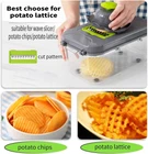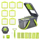 Product Description: Introduction: Miibox Vegetable Chopper, everything you need is in this versatile 22-in-1 vegetable chopper with container, our manual food chopper and cutter comes with 13 interchangeable stainless steel blades that allow you to easily shred, julienne, and dice, now start enjoying the kitchen fun with the onion slicer. Details: 1. Multi-functional, equipped with useful tools for different purposes 2. Portable handle design, easy to pick up and take away 3. Save time and energy by cutting vegetables 4. Easy to use and clean, need to remove the blade, rinse and dry. 5. Widely applicable - suitable for tomatoes, carrots, potatoes, eggs, fruits, vegetables, etc. Packaging: 7*Dicer blades (large or small) 2*Slicer blades (thick or thin) 2*Shred blades (thick or thin) 1*Detachable Vegetable Chopper 1*Cut Flower Blade 1*Mince ginger Ground blade 1*Egg white separator 1*Blade Storage Box 1*Hand guard 1*Paring knife 1*Container with Lid 1*Draining Basket 1*Cleaning Fork 1*Cleaning brush