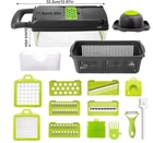 Vegetable Chopper,17 in 1 Kitchen Gadgets Accessories,Food Salad Chopper Vegetable Cutter,Mandolin,Onion Veggie Chopper with Container,Vegetable Slicer,Dicer Chopper Box for Fruit,Potato,Tomato About this item: · 【 17-in-1 Multifunction 】 -Vegetable Chopper Slicer contains 8 different sizes of fruit chopper blades interchangeable blades , 1 hand guard, 1 draining basket, 1 water reservoir, 1 food container, 1 chopping board, 1 egg separator, 1 peeler, 1 toothed spatula for,1 small brush thick/thin slicing, dicing or chunking, shredding/shredding, thick or thin, grinding and chopping. Onion Chopper rust-resistant heavy- 420 stainless steel maintains sharp edges for crisp, smooth cuts and grating. · 【 DURABLE STAINLESS STEEL MATERIAL 】 -Onion Cutter This vegetable chopper is rust-proof. The vegetable shredder is made of durable stainless steel material and the punching blade manufacturing technology can ensure the sharpness of the blade to a large extent. The vegetable shredder can realize sharp, smooth cutting and grinding. The spiral vegetable cutter is very suitable for cutting potatoes and tomatoes. · 【 INNOVATIVE DESIGN 】 - Free up countertop space with food containers. The built-in cutting lid allows you to cut food directly into the large 1.2L food container, eliminating the need for a knife and cutting board. This prevents food from sliding off while slicing. The onion chopper also makes it clean, safe and easy to use. No more hassle of cleaning and scrubbing. It can be easily cleaned in minutes with the matching scrubbing fork. Its compact size allows you to store it almost anywhere. · 【 IMPROVES YOUR HEALTH AND SAVES TIME 】 - Vegetable slicer , Chopping, mincing and slicing ingredients for desired dishes can take a lot of time and effort, like tomatoes, cabbage, onions, garlic, etc. The new upgraded vegetable chopper reduces the time for the whole process, so you won't have trouble cooking or chopping vegetables and fruits. This makes it easier to add vegetables to your diet, adding variety to your family's meals and not missing out on any important nutrients. · 【 LIFETIME WARRANTY 】 -If there is any other problem with our vegetable chopper, you can contact us via free live chat. What we do will make life easier, better and more fun. Make sure our food dicer products are the absolute best on the market