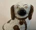 Victorian STAFFORDSHIRE COPPER LUSTRE SPANIEL DOG Split/Separate Leg Left Hand dog No cracks or chips Iconic ornament Any problems please get back to me I have a good reputation Thank you for lookingWe have moved to a smaller house and 40 years of accumulated items need to be sold in excellent condition Swift postage UK Seller see picture Thank you for looking