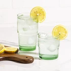 Better Homes & Gardens clear green glassware 8 pack, 15 oz. This glass is made from a 100% recycled glass. This glass has a wavy light green color. The glasses are stackable for easy storage and perfect for everyday use. Dishwasher safe. On Feb 15, 2025 at 00:42:53 PST, seller added the following information: