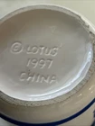 This vintage ceramic BBQ jar from Lotus is perfect for holding your cooking and grill tools, or even your favorite barbecue sauce. The blue color and ceramic material give it a unique and rustic look that will complement any outdoor space. Measuring 4 inches in width and 4.75 inches in height, this jar is both practical and stylish. It's a great addition to any home or garden, and is sure to impress your guests at your next outdoor gathering. The jar comes with a ceramic handle and is made in China. Whether you're a professional chef or just enjoy cooking and entertaining, this BBQ tool holder or sauce holder is a must-have. You can self personalize it for cute gift ideas by using a paint marker ! Perfect for that special griller in the family. Excellent condition **. Utensils NOT INCLUDED USED FOR STAGING purposes ONLY*****