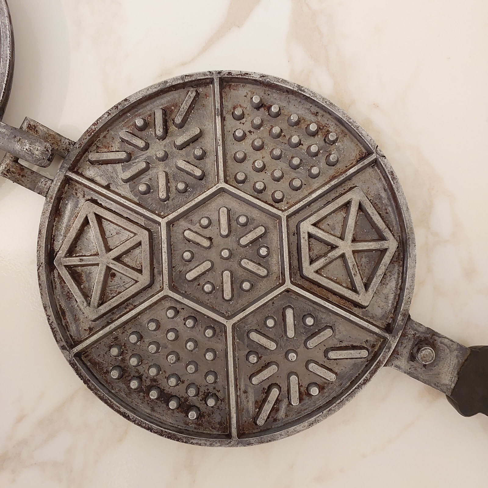 A famous Soviet cookie mold for baking sweet cookies. The sweet treat which any Soviet kid craved for! Ancient soviet bakeware wafer and cookie baking dish. I have all forms of retro times of the USSR and made in compliance with all food metal quality standards. Dimensions: Diameter mold: 17 cm./ 6.69 in Length with handle: 44 cm./ 17.32 in Weight: 1105 grams Good vintage condition! Rare and original soviet collectible items. Nice and rare item for your collection. Wonderful gift for friends or just for someone you love. Legendary Soviet quality.