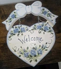 Add a touch of charm to your home with this Vintage Blue Floral Welcome Sign Wall Art. The beautiful floral pattern in shades of blue adds a country style to your living space. The heart-shaped sign is perfect for welcoming guests and adding a personalized touch to your home décor. Crafted with care, this sign is a great addition to any art-themed collection. The sign is ideal for use in any room of your home, from the living room to the bedroom. Hang it on your wall to create a warm and inviting atmosphere.