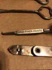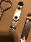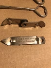 Vintage Can Opener/Bottle Opener Combo 8 Piece Set in Excellent Used Condition. There is some rust on two of the rotary can openers, but nothing that conflicts with its natural movements. The rust is on the main plate and not the cutting wheel on both of the rotary can openers I’m talking about. It is cosmetic. Two of the three are Vaughn’s Safety Roll Jr. can openers, and the third one is a Ekco Miracle Roll 881. The Ekco Miracle Roll 881 also has an attached bottle opener. The small Vaughn solid can opener is foldable. The Lone Star Beer can opener is one solid piece. There are 3 paint can/bottle openers with various paint advertising on the side of each of them. Napko Finer Paints, Pure Paint Products, and Luminall Paints are the three different advertisements stamped on the side of these bottle openers. I tried to show all of these in the pictures, to help display what I am talking about.