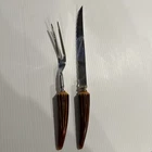 Add a touch of rustic charm to your dining table with this vintage carving fork and knife set from Regent Sheffield. The set includes a knife and fork, both made of stainless steel with a glossy finish, and a sharpening rod for easy maintenance. The handle pattern is in the shape of a horn, giving the set a unique and timeless look. This classic set is perfect for any occasion and is sure to impress your guests. It is a reusable set, making it a great addition to your flatware collection. The set weighs 1 lb and is a great gift for adults who appreciate the beauty of vintage flatware.