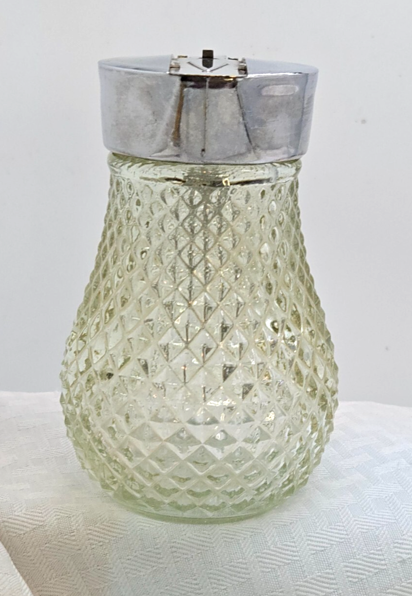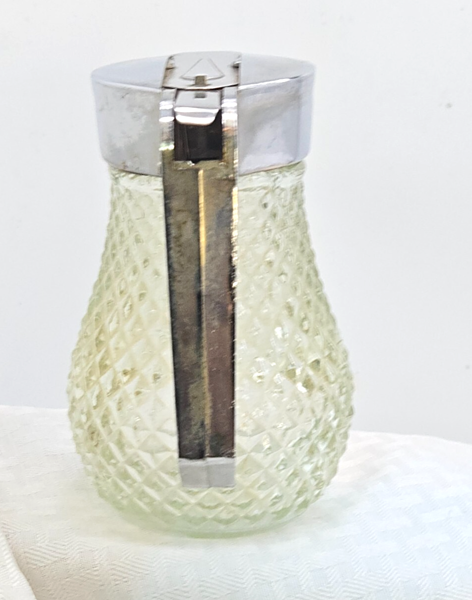Vintage Syrup Dispenser Diamond Cut Glass Sliding Metal dispenser Good condition