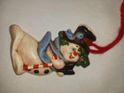 This vintage Hallmark ornament features a charming snowman named Frosty the Snowman. Perfect for the Christmas season, this ornament is a great addition to any collection. The ornament is shaped like a snowman and includes a tree, making it a festive and classic decoration. With its vintage look and feel, this ornament is perfect for collectors or anyone who loves a classic Christmas tree ornament. Celebrate the holiday season with this charming and timeless piece.