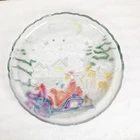 Vintage Excellent condition. Box has some wear Grandeur Noel Round heavyweight glass serving platter Christmas pattern, Santa in his sleigh with reindeer, trees, snow, houses Colorful, paint has a sheen when the light hits Hand painted Do not use in dishwasher 14” Comes in original box