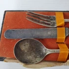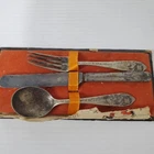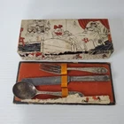 Vintage Little Red Riding Hood Fork Spoon Knife Set Silverplate Walt Disney Box.