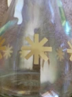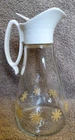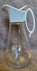 Vintage Log Cabin Syrup Pitcher MCM Gold Atomic Starburst Design Glass Dispenser 7.5" tall Clean, no chips or marks Excellent condition