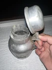 This vintage syrup dispenser is a must-have addition to any kitchen. Made of durable aluminum, it features a hinged lid and is perfect for serving pancakes and syrup. The dispenser has a classic design that will add a touch of nostalgia to any dining table. Condition shown in photos